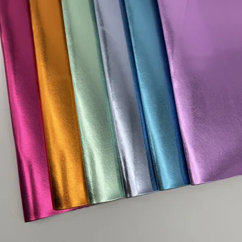 Hot Sale Metallic Finish 0.7mm PU Artificial Leather Fabrics Knitted Backing for Lady Shoes and Bags